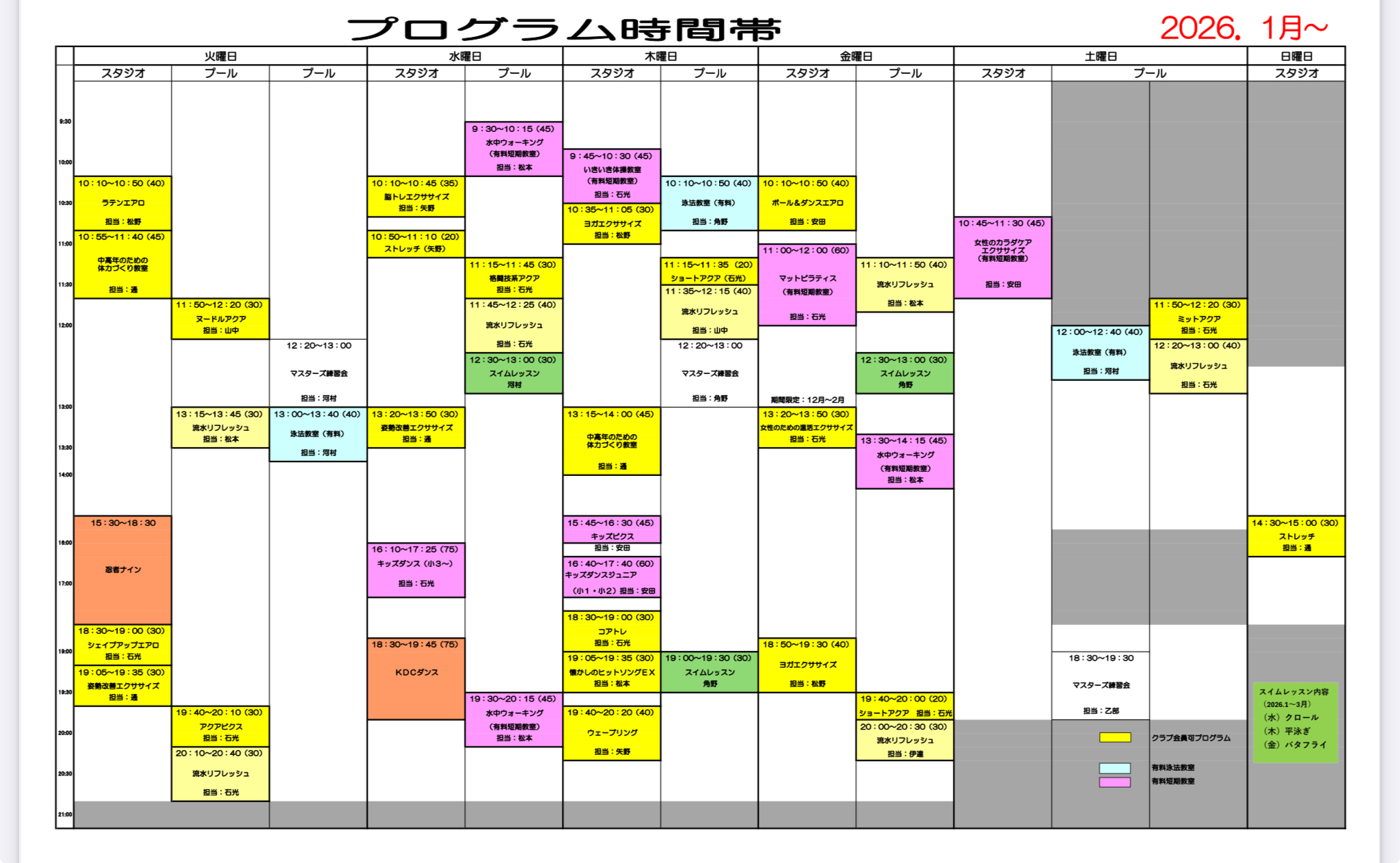 ※プールプログラム「泳法教室」は有料教室となります。