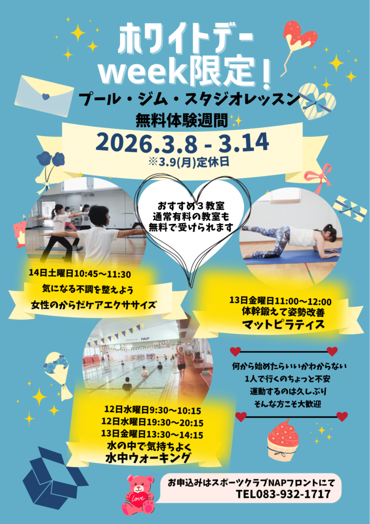 【成人向け】Whitedayweekのお知らせ 2026 2/17 お知らせ 2026年2月17日 お知らせ よかったらシェアしてね! URLをコピーしました! URLをコピーしました! Valentin week この記事を書いた人 nap 関連記事 Valentin week 2026年1月24日 マウンテンバイク&カヌーinきらら博記念公園 4月29日(火・祝) 2025年5月8日 2週間お試し会員参加者募集 2024年6月2日 今、NAPが水泳をおススメする理由 2020年7月22日 コメント コメントする コメントをキャンセルコメント ※ 名前 ※ メール ※ サイト 次回のコメントで使用するためブラウザーに自分の名前、メールアドレス、サイトを保存する。