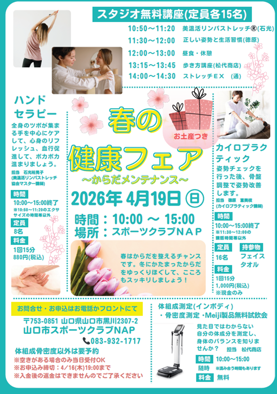 春の健康フェア2026 2026 3/22 お知らせ 2026年3月22日 お知らせ よかったらシェアしてね! URLをコピーしました! URLをコピーしました! 1月アウトドア活動:「火起こし対決」活動報告 この記事を書いた人 nap 関連記事 マウンテンバイク&カヌーinきらら博記念公園 4月29日(火・祝) 2025年5月8日 2週間お試し会員参加者募集 2024年6月2日 今、NAPが水泳をおススメする理由 2020年7月22日 コメント コメントする コメントをキャンセルコメント ※ 名前 ※ メール ※ サイト 次回のコメントで使用するためブラウザーに自分の名前、メールアドレス、サイトを保存する。